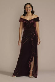 Stylish Sheath Off Shoulder Short Sleeve Ruffled Back Floor Length Mother of the Bride Dress - US 2 / UK 6 / EU 32