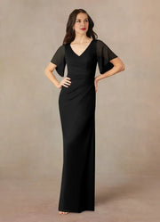 Stylish Sheath V Neck Flutter Sleeve Ruched Back Mother of the Bride Dress Evening Dress Prom, black tie events, formal weddings, and upscale parties