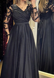 V-Neck Long Sleeves Appliques Pleated A-Line Mother of Bride Dress simple gentle atmospheric and unique desi Bring summer colors to enhance whiteness