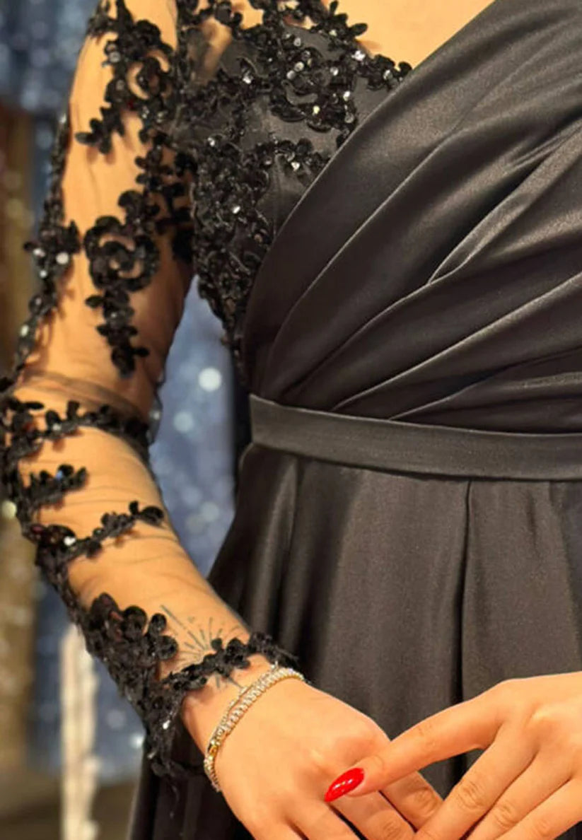 V-Neck Long Sleeves Appliques Pleated A-Line Mother of Bride Dress simple gentle atmospheric and unique desi Bring summer colors to enhance whitenesshance whiteness(副本)