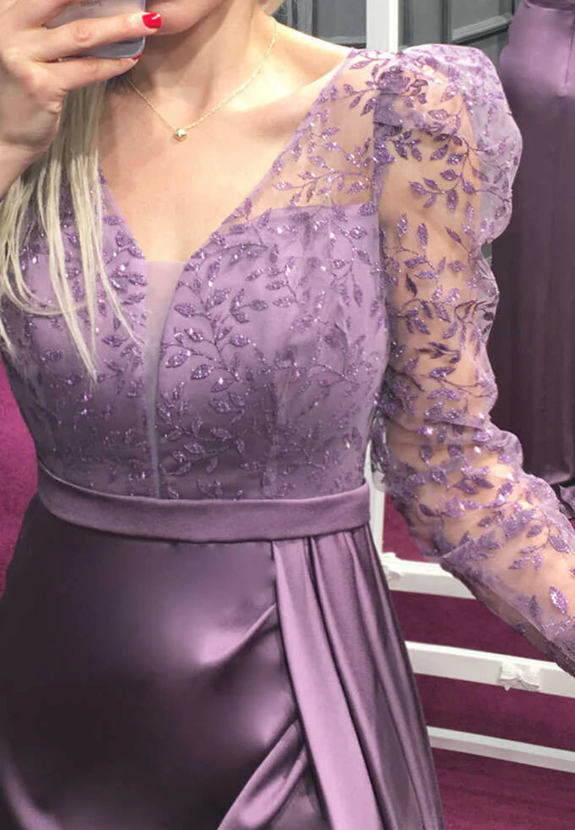 V-Neck Long Sleeves Appliques Pleated Sheath Mother of Bride Dress simple gentle atmospheric and unique desi Bring summer colors to enhance whiteness - US 2 / UK 6 / EU 32