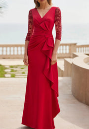 V-Neck Neck Long Sleeveless Appliques Ruffled Sheath Mother of Bride Dress simple gentle atmospheric and unique desi Bring summer colors to enhance whiteness