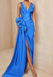 V-Neck Straps Pleeated Side Slit Pleated Mother of Birde Dress Sheath Formal Dress simple gentle atmospheric and unique desi Bring summer colors to enhance whiteness