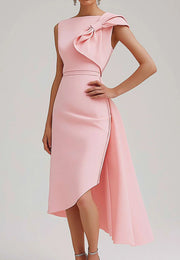 Wedding Guest Semi-Formal Dress Pink Sleeveless Bow Asymmetrical Midi Dress simple gentle atmospheric and unique desi Bring summer colors to enhance whiteness - US 2 / UK 6 / EU 32