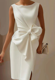 White 3D Bow Sleeveless Sheath Midi Dress simple gentle atmospheric and unique desi Bring summer colors to enhance whiteness - US 2 / UK 6 / EU 32
