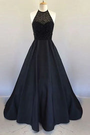 Black long dress with a hanging neck collar suitable for dinners, dances, formal parties, etc Prom, black tie events, formal weddings, and upscale parties
