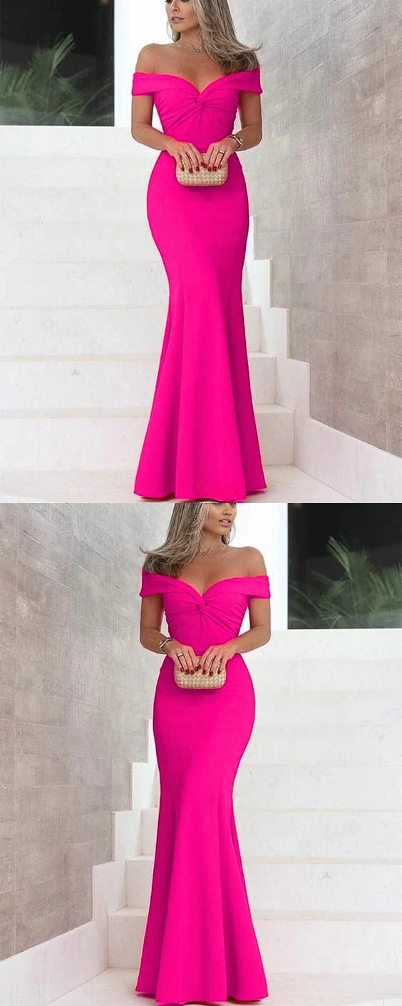 This bright pink off-shoulder long dress combines elegance with a modern silhouette, making it an excellent choice for weddings, dinners, and formal events. Its off-shoulder design accentuates the neckline and shoulders, offering a flattering and sophisticated look. Crafted to provide both comfort and style, this dress ensures you stand out gracefully at any special occasion.