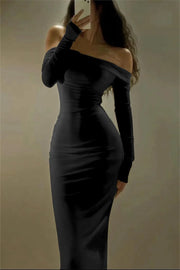 Off the Shoulder Strapless Long Sleeves Long Prom Dress With Pleated
