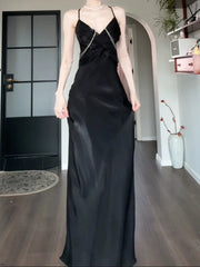 Pretty Sheath Spaghetti Straps Black Silk Satin Prom Dresses Sexy Evening Dress formal wear dresses simple gentle atmospheric and unique desi Bring summer colors to enhance whiteness