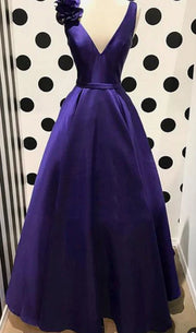 This elegant purple long dress features a deep V-neckline paired with delicate floral accents on the shoulders, combining sophistication and charm. Perfectly suited for formal occasions such as dinners, weddings, and award ceremonies, it offers a refined silhouette that enhances your presence while ensuring comfort throughout the event.