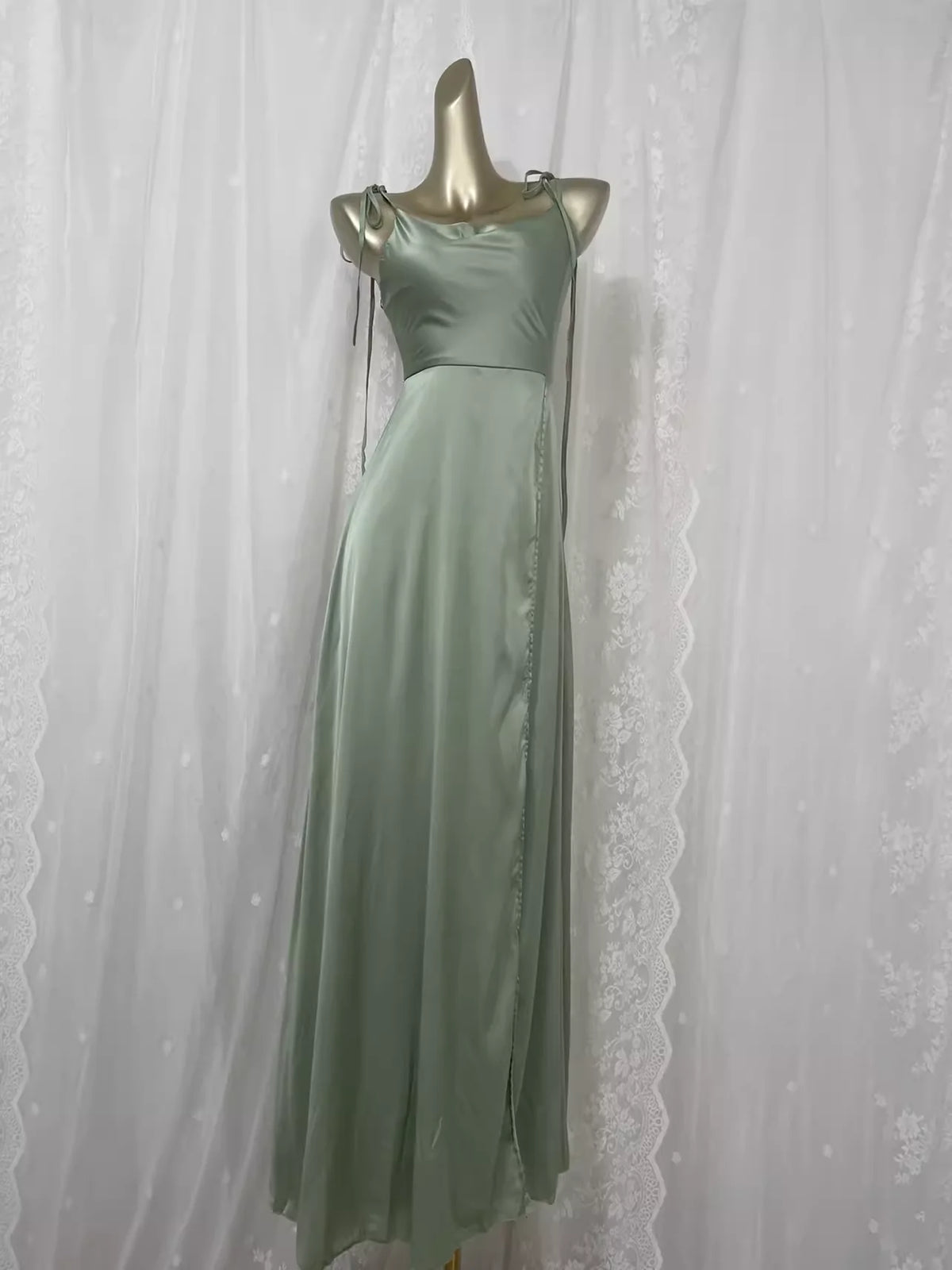 Sexy A line Spaghetti Straps Sage Green Long Vacation Dress Birthday Dresses simple gentle atmospheric and unique desi Bring summer colors to enhance whiteness - US 2 / UK 6 / EU 32