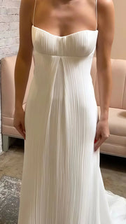Sexy Mermaid Long Prom Dress Spaghetti Straps White Formal Party Dress, Pleated Sheath Long Prom Dress