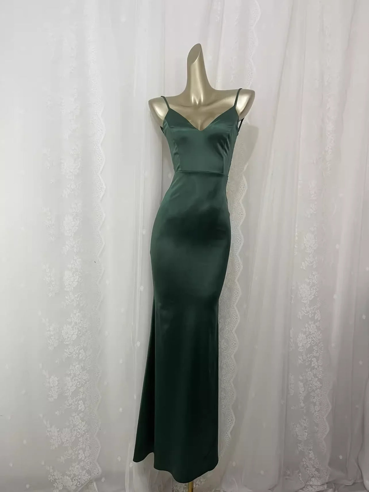 Simple Sheath Spaghetti Straps Green Long Vacation Dress Birthday Outfits simple gentle atmospheric and unique desi Bring summer colors to enhance whiteness - US 2 / UK 6 / EU 32