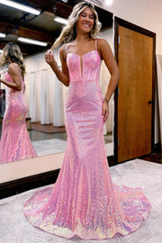 Sparkly Mermaid Sweetheart Pink Sequins Long Prom Dresses