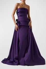 Strapless Backless Sleeveless Long A Line Prom Dress With Pleated