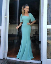 Teal Square Neck Mermaid Evening Gown with Flutter Sleeves Formal Dress, Long Prom Dresses With Short Sleeves Party Dresses