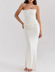 Women's Long Dress Maxi Dress White Dress Graduation Dress Prom Dress Party Dress Elegant Fashion Party Special Occasion Evening Party Regular Fit Plain Sleeveless Strapless Black White Pink Red