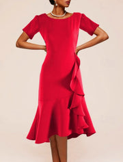 Women's Midi Dress Prom Dress Party Dress Peplum Dresses Fashion Party Evening Party Regular Fit Plain Short Sleeve Crew Neck Black Wine Summer