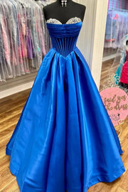 A-Line Strapless Sweetheart Beads Pleated Sleeveless Formal Prom Dress