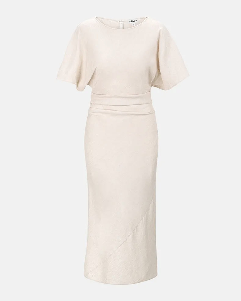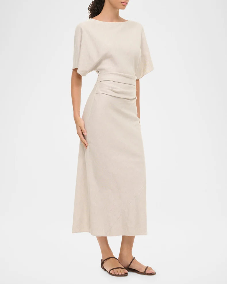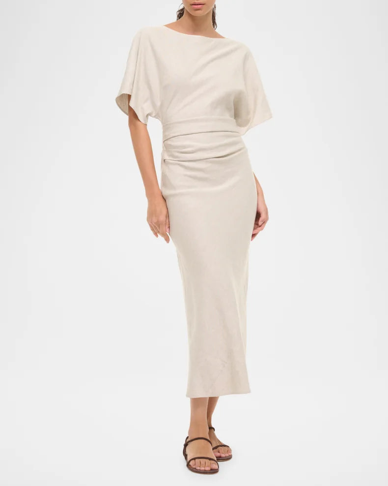 Amelie Linen Midi Dress Shimmer Twist Gown Simple beautiful generous and full of charm
