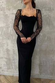 Black Long Sleeves Sheath Pleated Long Formal Prom Dress