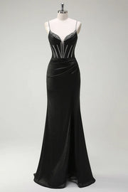 Black Mermaid Spaghetti Straps Corset Long Prom Dress With Slit simple gentle atmospheric and unique desi