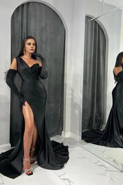 Black One Shoulder Prom Dress Mermaid With Split Simple gentle atmospheric and unique design