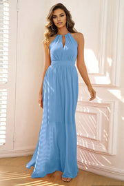 Blue A-Line Halter Sleeveless Long Formal Dress simple gentle atmospheric and unique desi