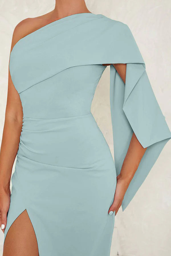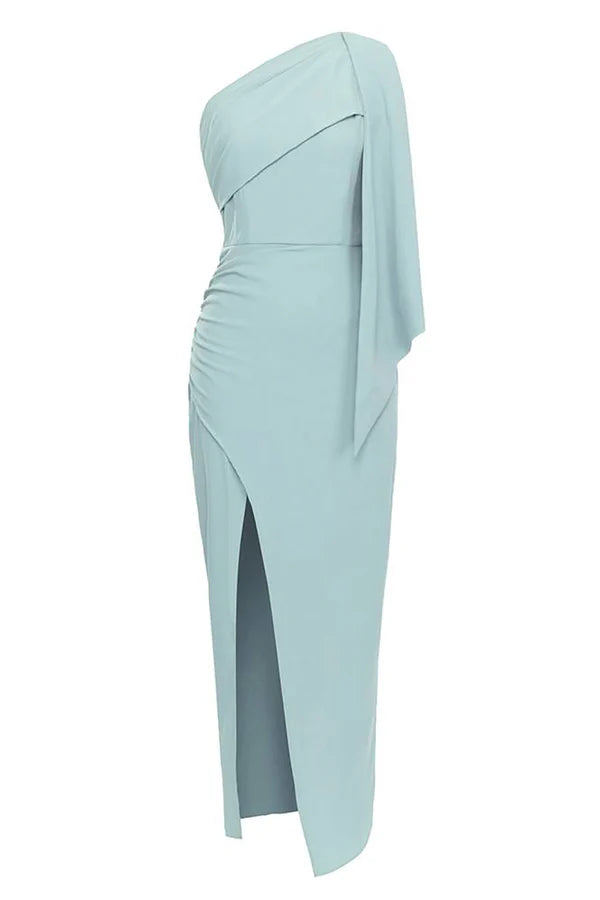 Blue One Shoulder Bodycon Long Formal Dress Simple gentle atmospheric and unique design - US 2 / UK 6 / EU 32