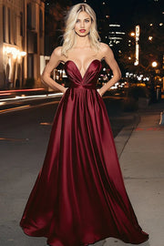 Burgundy Satin Strapless Ruched A-Line Long Prom Dress simple gentle atmospheric and unique desi Bring summer colors to enhance whiteness