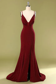 Burgundy V-neck Evening Dress Simple gentle atmospheric and unique design