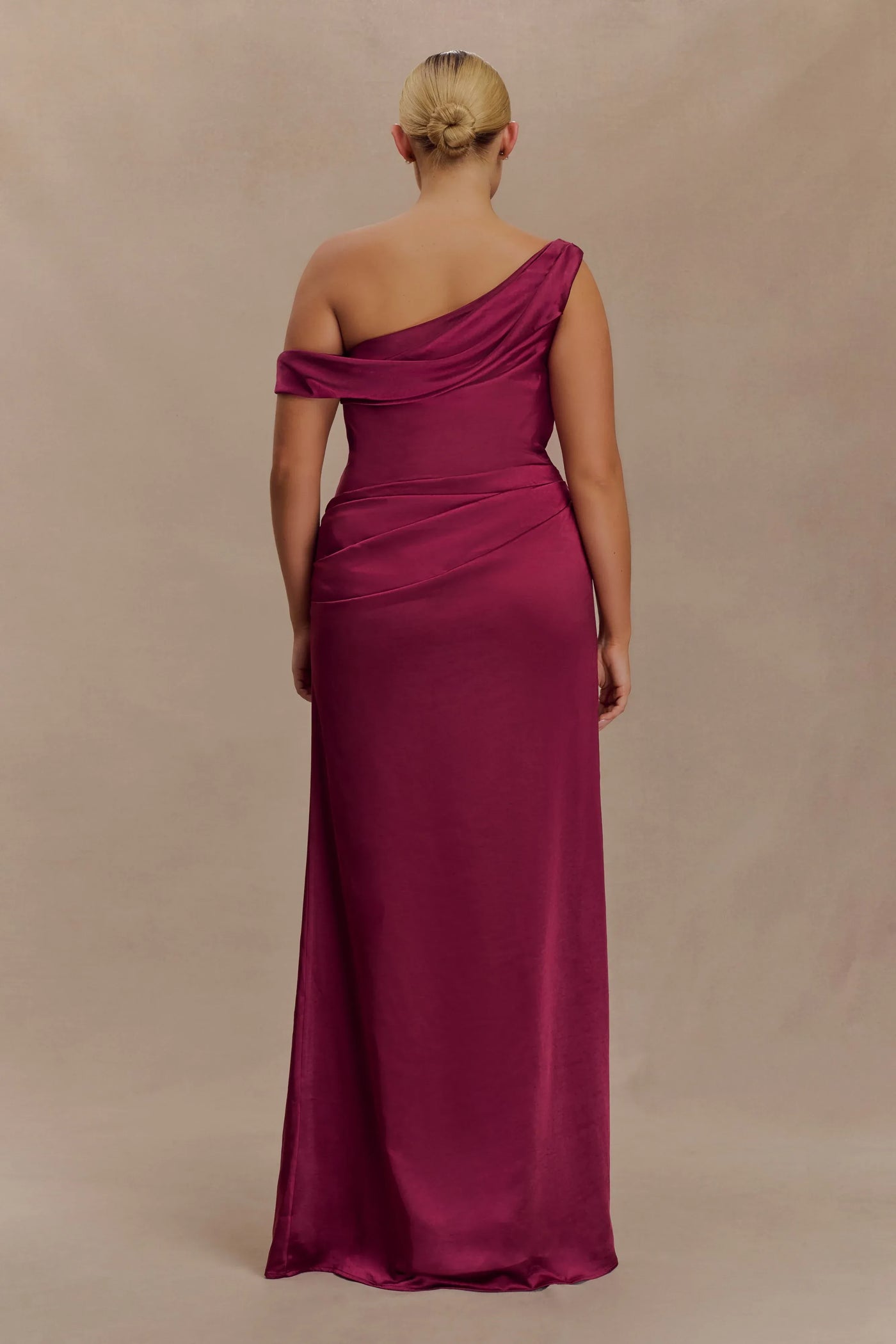Charming Sheath One Shoulder Sleeveless Ruched Back Floor Length Plus Size Prom Dress - US 2 / UK 6 / EU 32