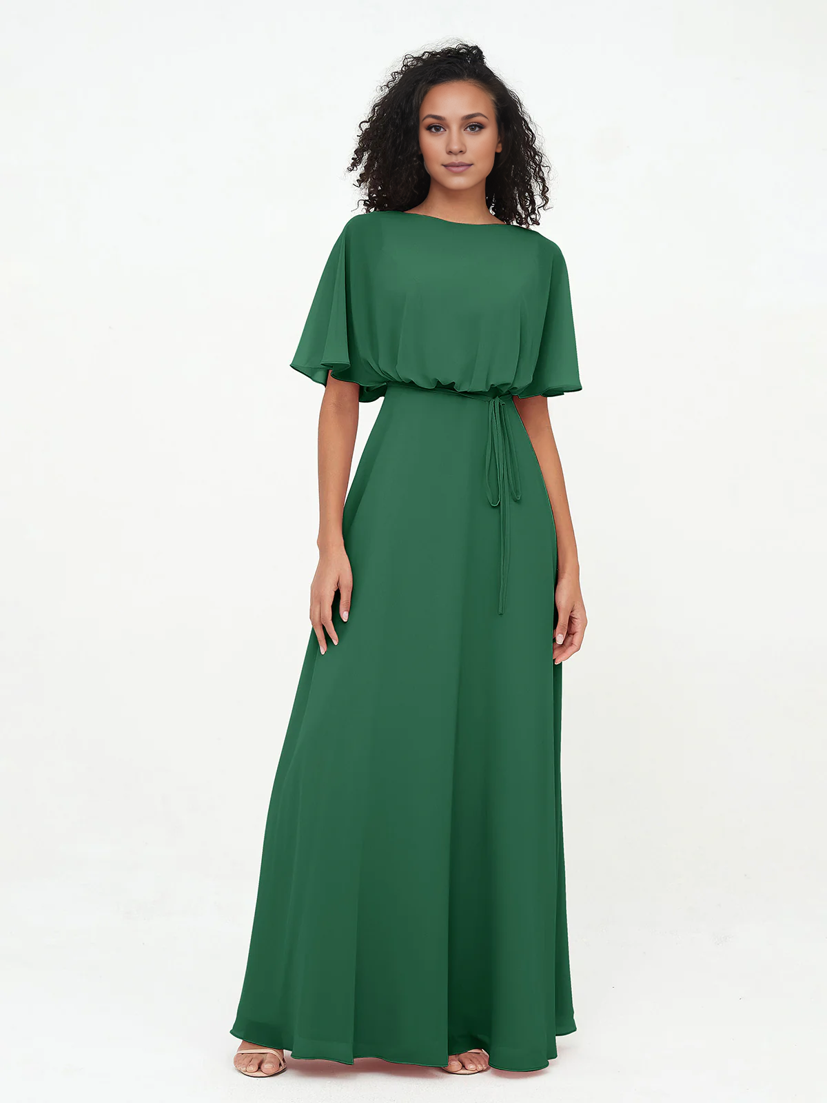 Chiffon Full Length Bridesmaid Dresses with Wrap Dark Green Simple gentle atmospheric and unique design