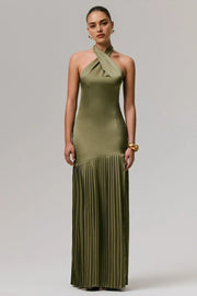 Classy Mermaid Halter Neck Sleeveless Bow Back Floor Length Prom Dress - US 2 / UK 6 / EU 32