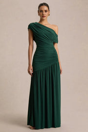 Classy Mermaid One Shoulder Draped Sleeve Ruched Back Prom Dress Evening Dress Prom, black tie events, formal weddings, and upscale parties
