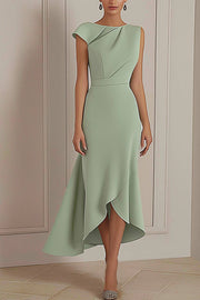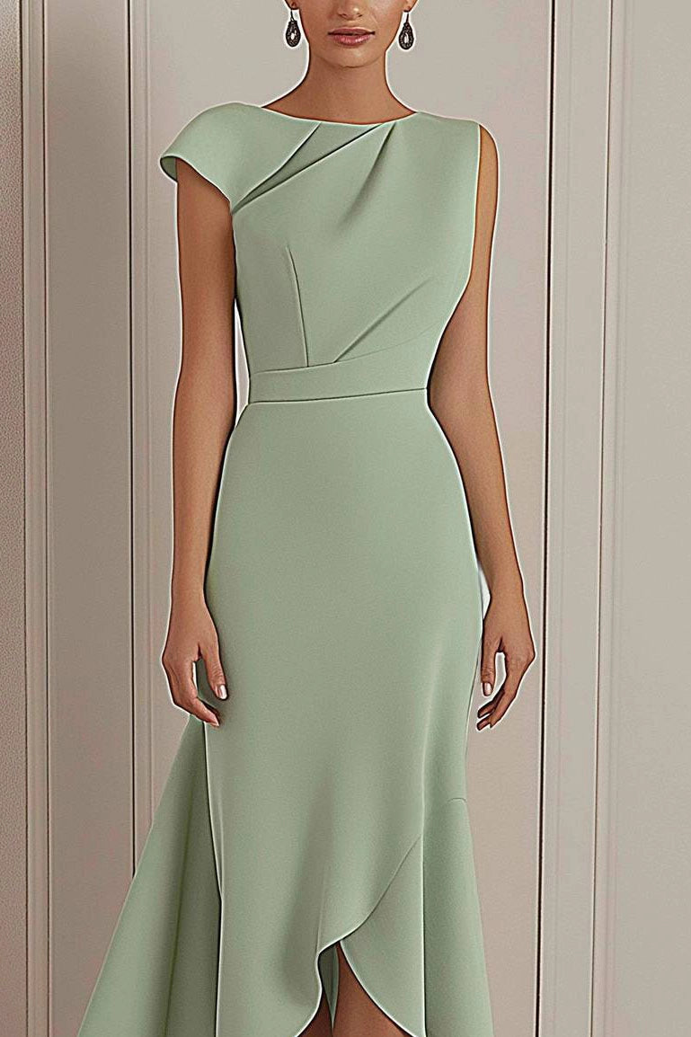 Daily Party Dress Sage Green Round Neck Asymmetric Midi Dress Simple beautiful generous and full of charm