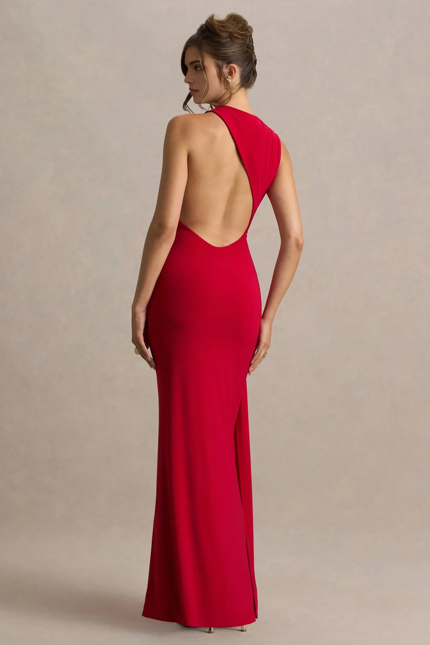 Daring Mermaid High Neck Sleeveless Cutout Accent Open Back Floor Length Prom Dress