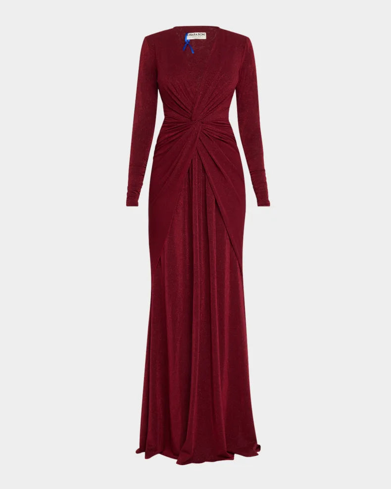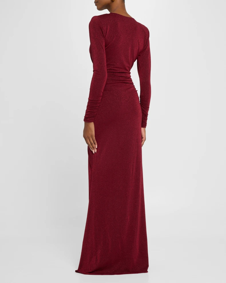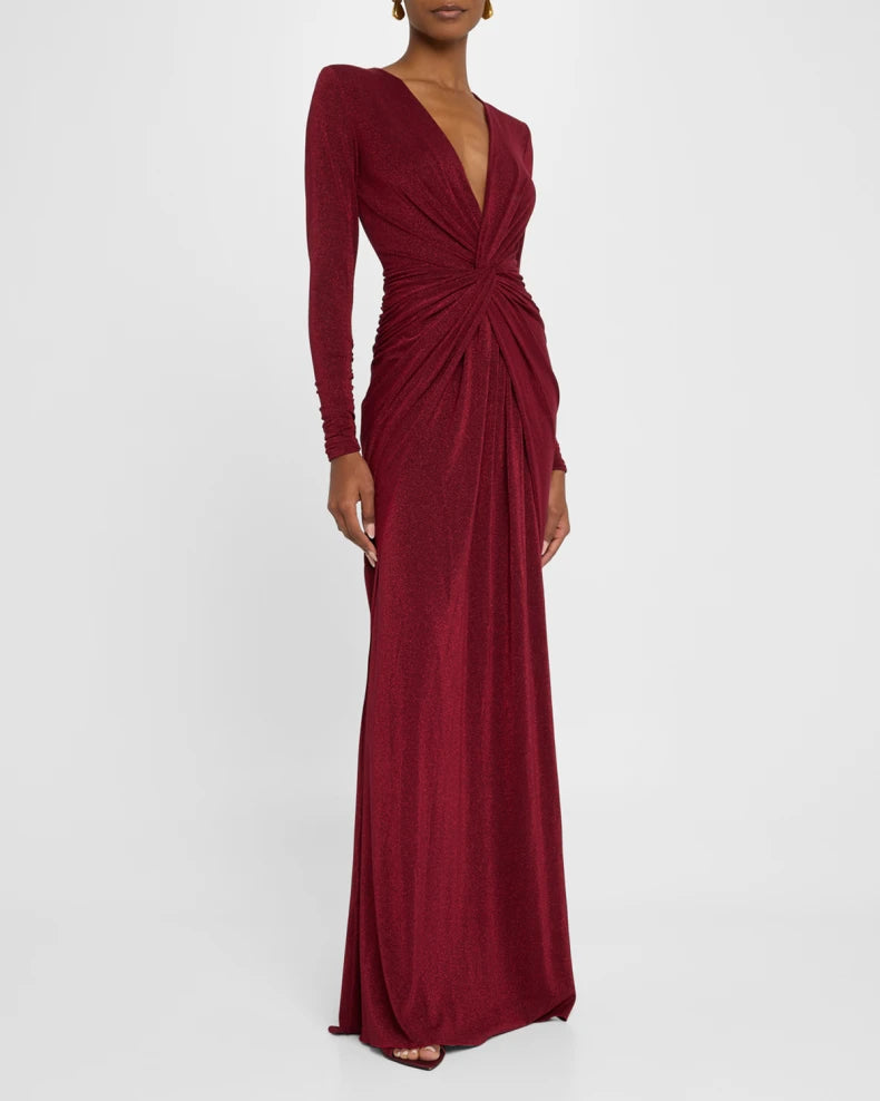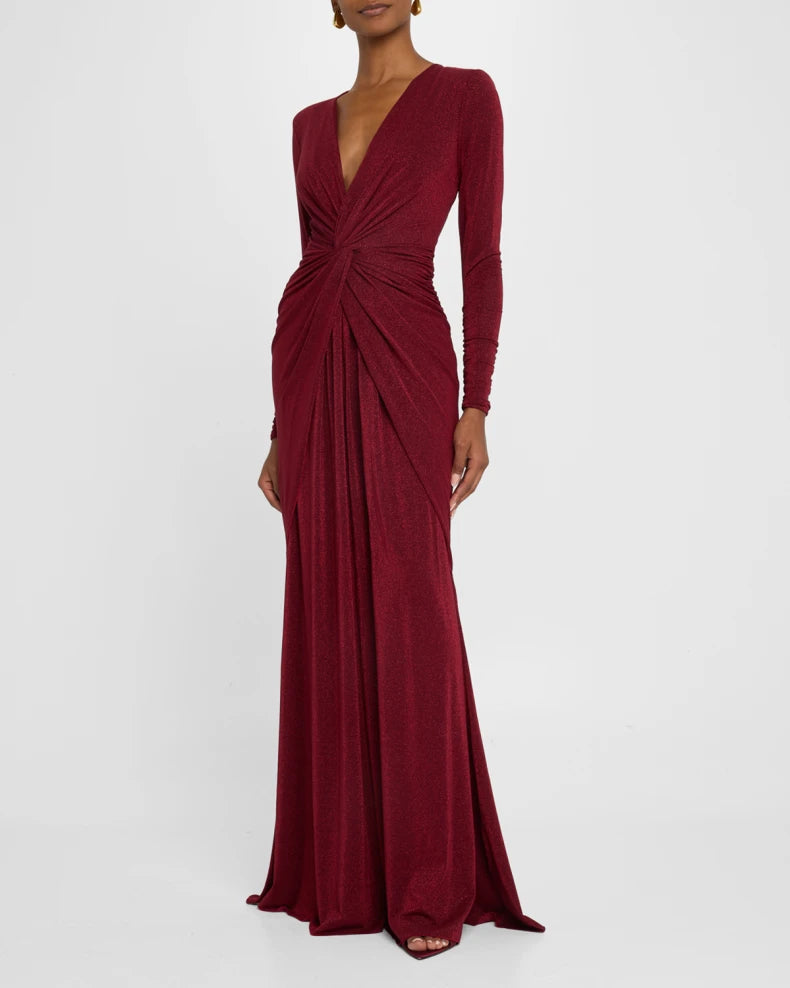 Deep V-Neck Shimmer Twist Gown Simple beautiful generous and full of charm