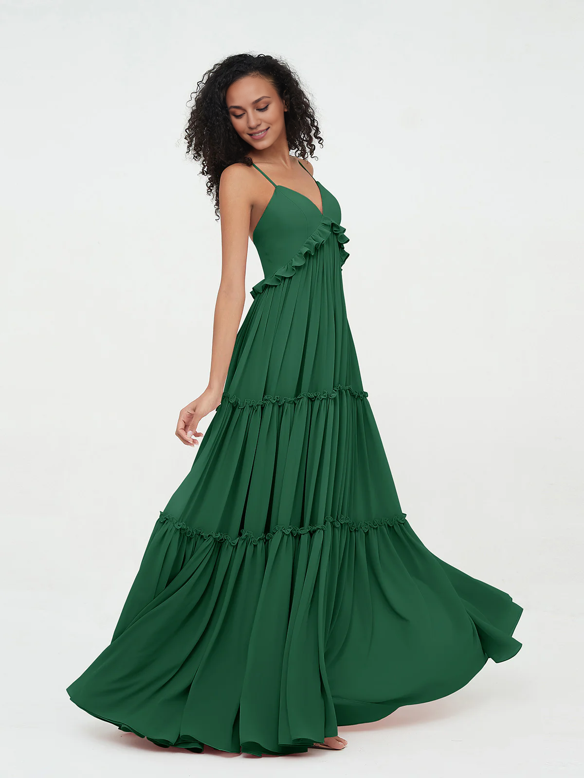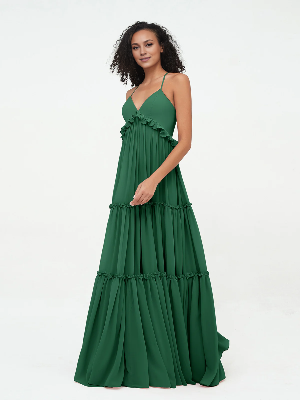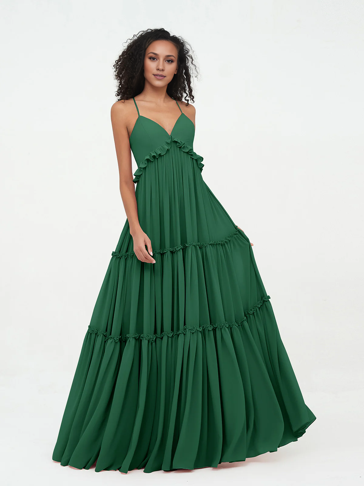 Empire Chiffon Tiered Skirt Max Bohemian Dresses-Dark Green