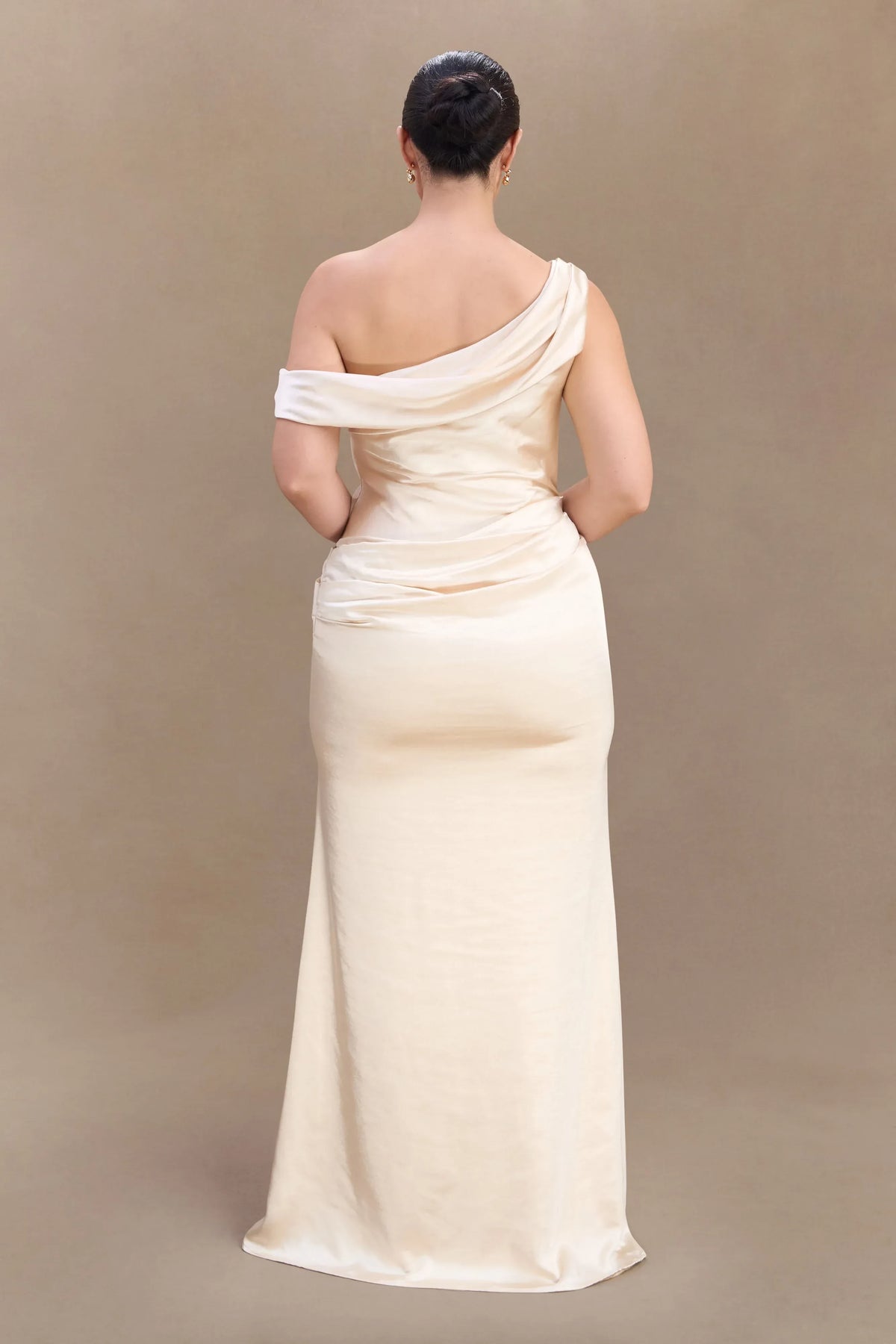 Enchanting Plus Size Sheath One Shoulder Sleeveless Draped Back Floor Length Prom Dress - US 2 / UK 6 / EU 32