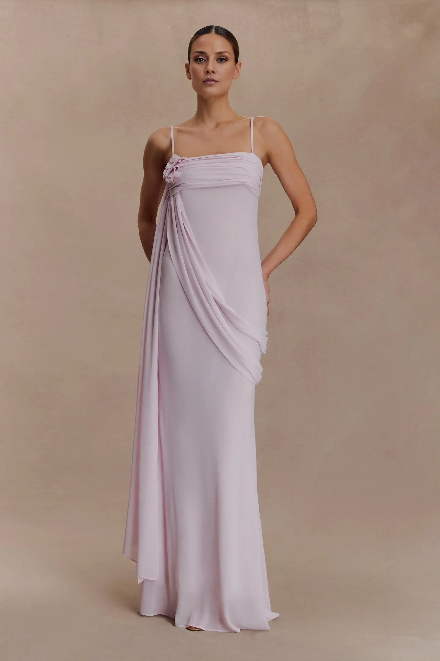 Enchanting Sheath Square Neck Spaghetti Strap Draped Floral Detail Prom Dress Evening Dress Prom, black tie events, formal weddings, and upscale parties