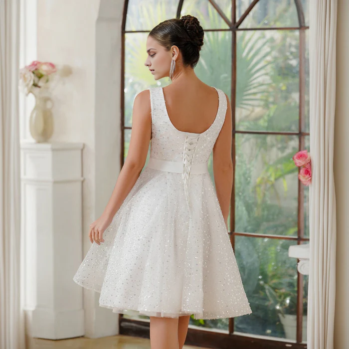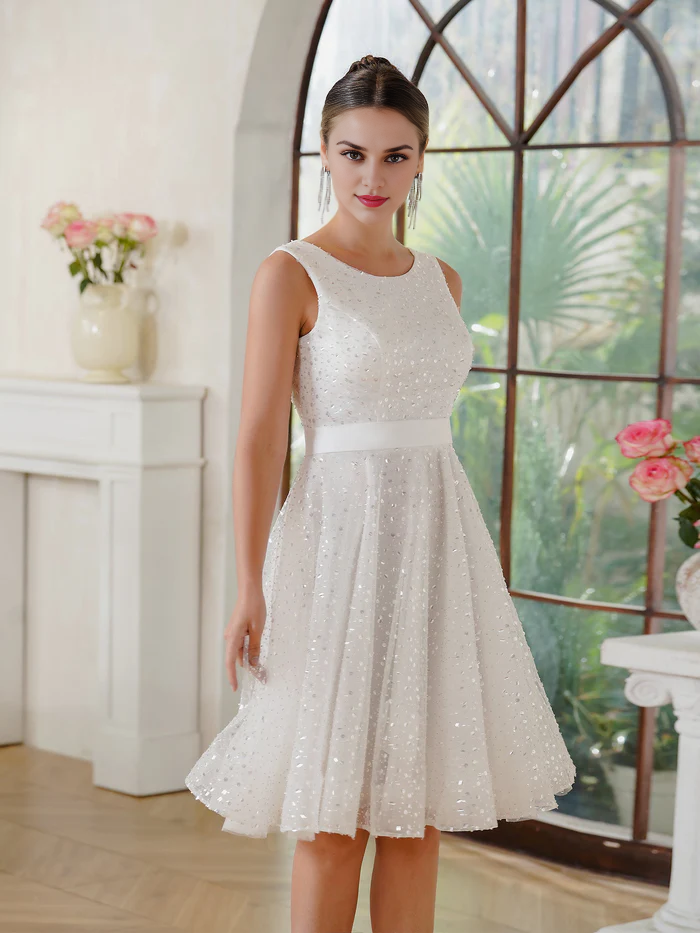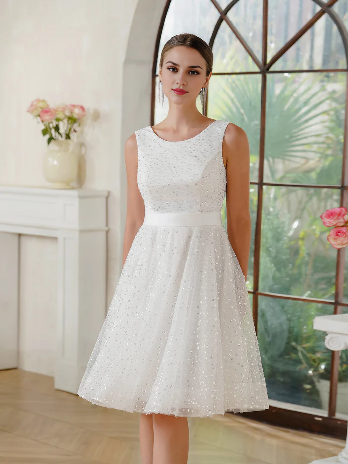 Fabulous A-Line Tulle Polyester Scoop Sleeveless Off White Prom Dress With Sequined Simple gentle atmospheric and unique design  - US 2 / UK 6 / EU 32