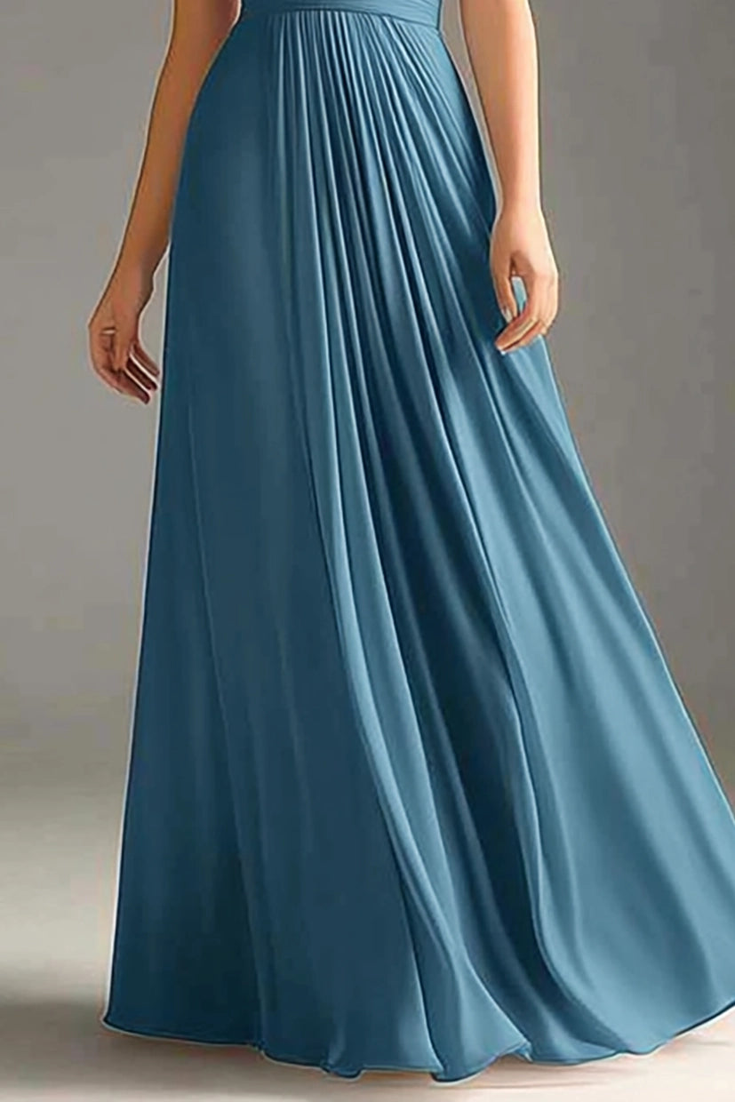 Formal Evening Dress Blue Spaghetti Strap Ruched Floor-Length Gown Simple beautiful generous and full of charm