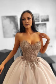 Glamorous Long A-line Beaded Sleeveless Tulle Sweetheart Prom Dress with Delicate Lace Details Simple gentle atmospheric and unique design