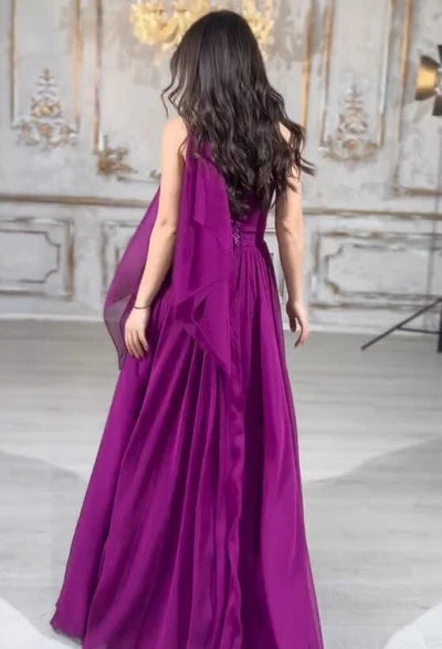 Graceful Long Purple A-line Strapless Laced-up Evening Dress Simple gentle atmospheric and unique design - US 2 / UK 6 / EU 32