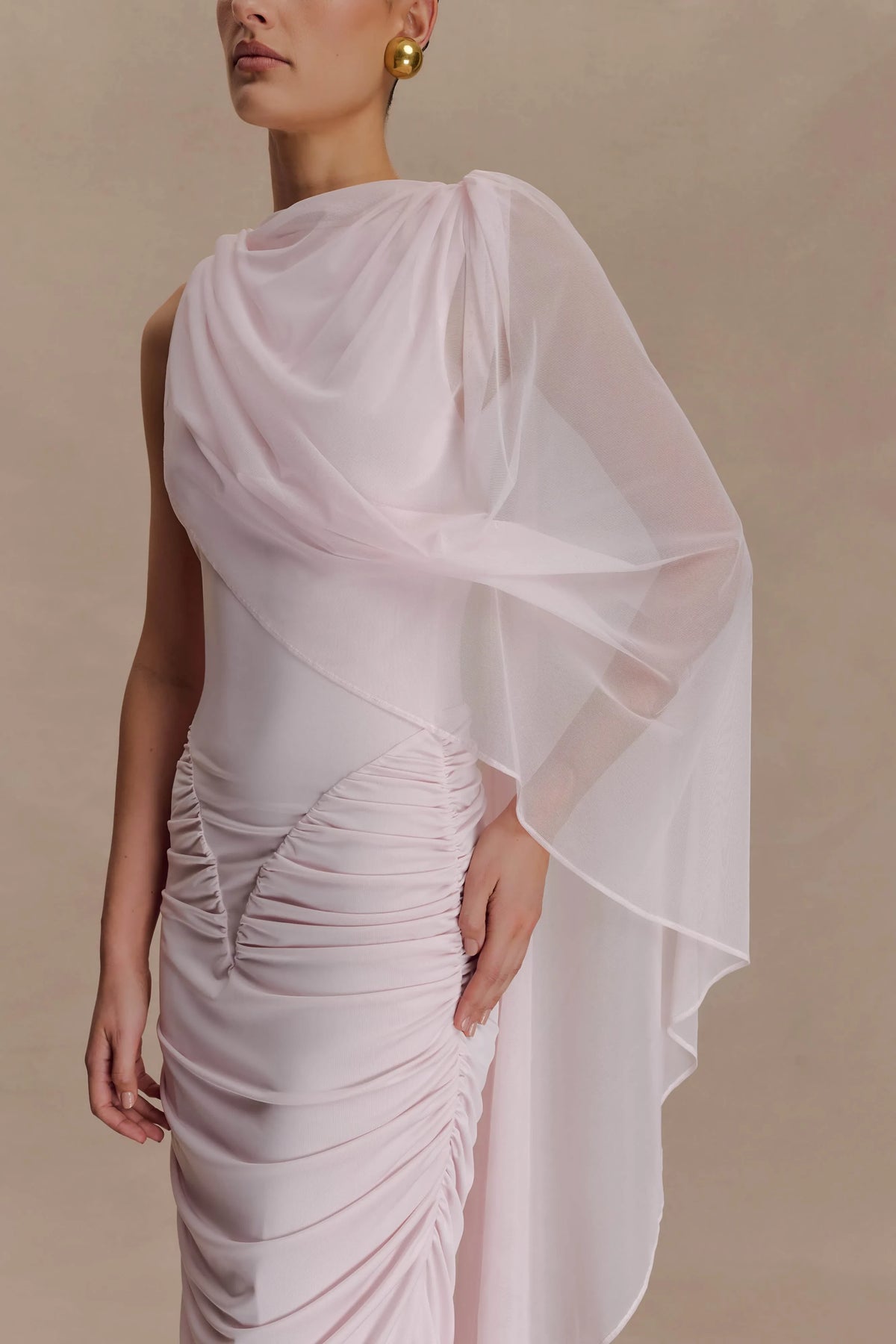 Graceful Mermaid One Shoulder Draped Sleeve Ruched Back Floor Length Prom Dress - US 2 / UK 6 / EU 32