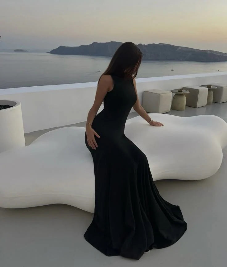 High Neck Sexy Black Evening Dress Long Prom Dresses