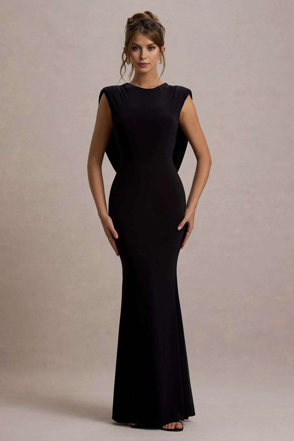 Majestic Mermaid Crew Neck Draped Accent Sleeveless Open Back Prom Dress Evening Dress Prom, black tie events, formal weddings, and upscale parties
