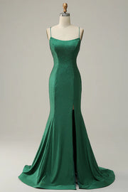 Mermaid Halter Dark Green Long Prom Dress with Appliques Beading Mermaid Spaghetti Straps Dark Green Long Prom Dress with Beadingand unique design