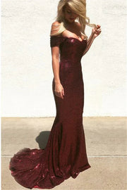 off-the-Shoulder Burgundy Sequins Prom Dress Mermaid Simple gentle atmospheric and unique design